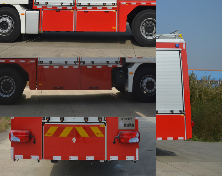 整車備注:罐體總?cè)莘e為8.912立方米,水罐容積:5.0立方米,水罐尺寸:1495×2400×1460mm,泡沫液罐容積:1.912立方米,泡沫液罐尺寸:1445×950×1460mm,干粉罐容積:2.0立方米,干粉罐尺寸(直徑×高):690×1400mm。整體式側(cè)后防護(hù)結(jié)構(gòu),后防護(hù)離地高度:480mm。ABS生產(chǎn)企業(yè)為KNORR,型號(hào)為0 486 106。主要專用裝置有消防泵、消防炮、干粉系統(tǒng)。