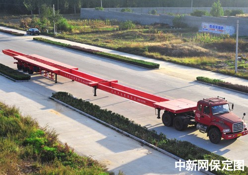 中新河北網(wǎng)保定10月18日電 保定曲陽(yáng)縣委宣傳部18日透露,河北曲陽(yáng)華運(yùn)順通專用汽車制造有限公司開(kāi)發(fā)的大型“風(fēng)電葉片運(yùn)輸車”在曲陽(yáng)下線。此車的下線,成為中國(guó)風(fēng)電葉片運(yùn)輸車行業(yè)中的典范。