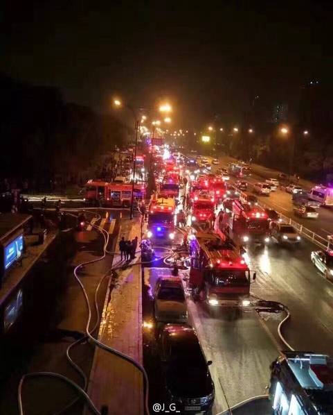 .截止11月28日0時30分,艮山西路66號一汽配倉庫火災(zāi),明火已基本得到控制,現(xiàn)場仍有消防車50余輛,消防官兵仍在奮力撲救,盡最大努力減少財產(chǎn)損失。圖為由于路窄車多,消防車很難進(jìn)入火場核心