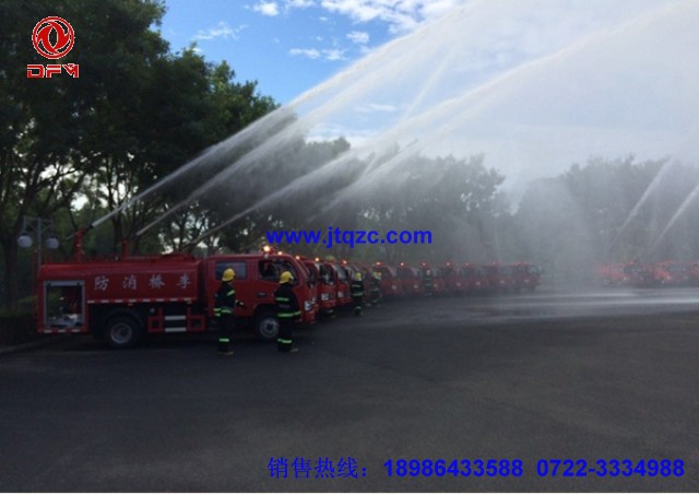 湖北江南專用特種汽車有限公司專門為小區(qū)、村鎮(zhèn)、糧庫、碼頭、校園、商場、工業(yè)園設計了一種簡易消防車又稱多功能灑水車,它有灑水車的前沖、后灑、側噴和工作平臺,它的前沖寬度能達到14米,側噴水炮射程可以達到24米。